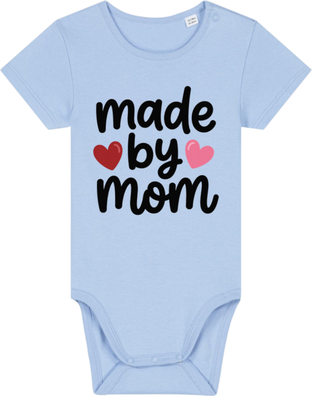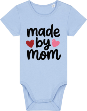 Denne baby body med "Made by Mom" print er den perfekte måde at fejre den særlige forbindelse mellem mor og barn på. Fremstillet af 100% økologisk bomuld, der er blid mod babys følsomme hud og bæredygtig for planeten.Farve: Blue Soul Størrelse: